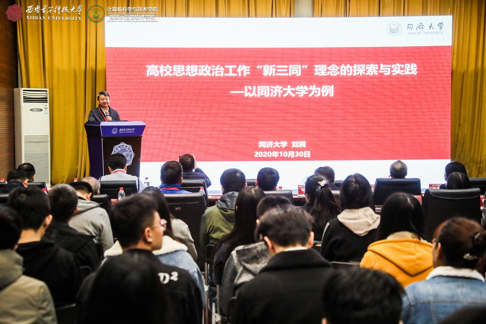 主题报告中,清华大学计算机科学与技术系副书记、入选《麻省理工科技评论》“35岁以下科技创新35人”中国区榜单(MIT TR-35 China)的刘知远教授围绕文化育人分享了计算机科学与技术系依托“五星计划”因材施教模式推动“三全育人”工作体系建设的具体举措;同济大学校长助理、党委学生工作部部长、研究生工作部部长刘润以同济大学为例,从管理育人角度阐述了高校思想政治工作“新三同”理念的相关探索与实践;东北大学秦皇岛分校副校长、国家级人才赵勇从研究生培养角度深入浅出地阐述了科研育人和导学思政的内涵、价值与实践路径;电子科技大学信息与软件工程学院党委副书记朱国斌从网络育人角度详细介绍了“三全育人”视阈下网络育人模式的建设举措与成效;华东师范大学法学院党委书记、教育部青少年法治教育协同创新中心执行主任张惠虹围绕组织育人,分享了学院在“强化思想引领、助推青年教师成长”方面的开展的具体工作;重庆大学土木工程学院党委书记华建民教授以“凝聚情谊、分享资源、回馈母校、奉献社会”为主题分享了学院服务育人维度的院友会机制建设和具体实践;浙江师范大学外国语学院党委书记俞明祥以“深耕课程思政,厚植立德树人”为主题,对教育部课程思政建设相关精神进行解读并介绍了学院课程育人的思路和做法。