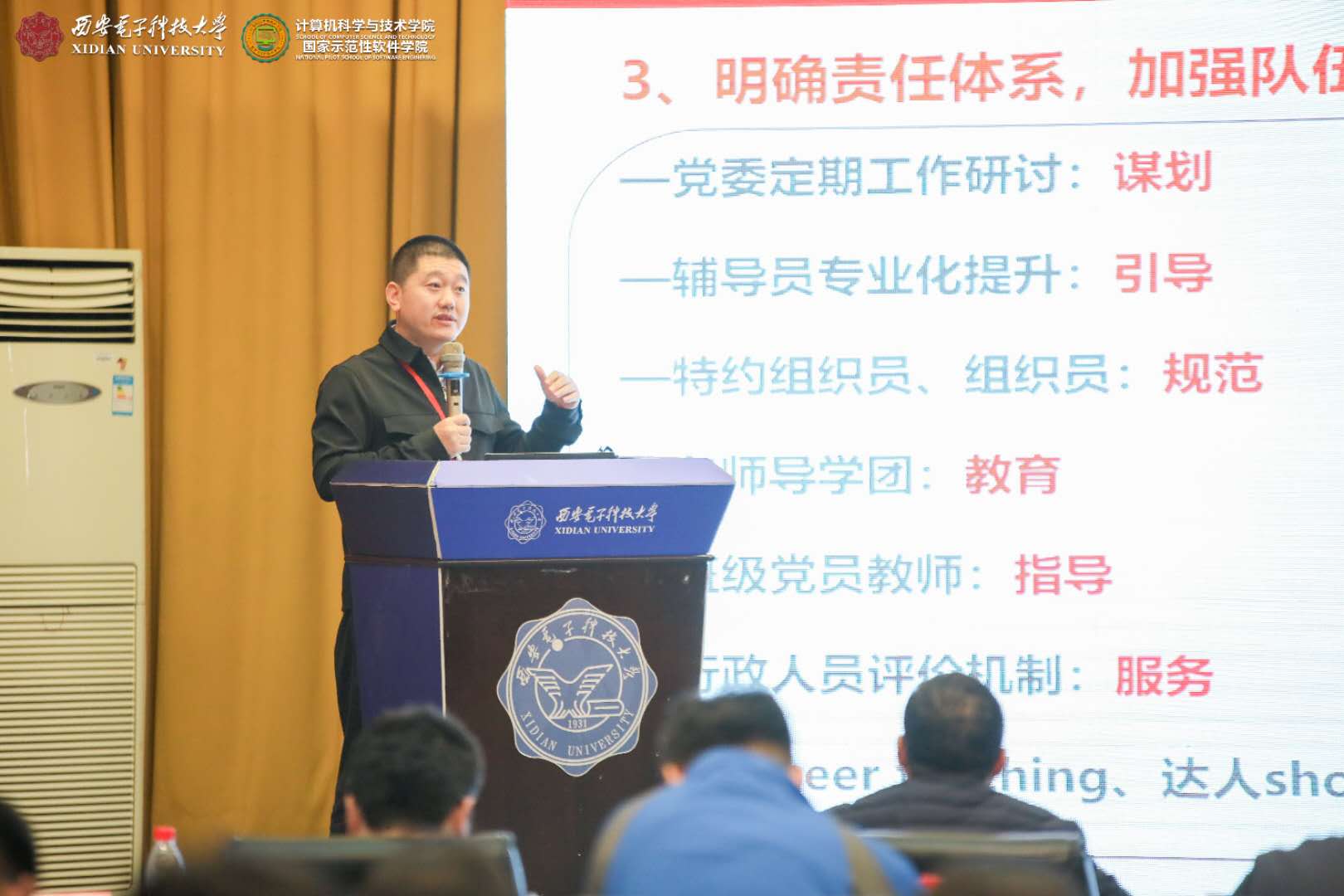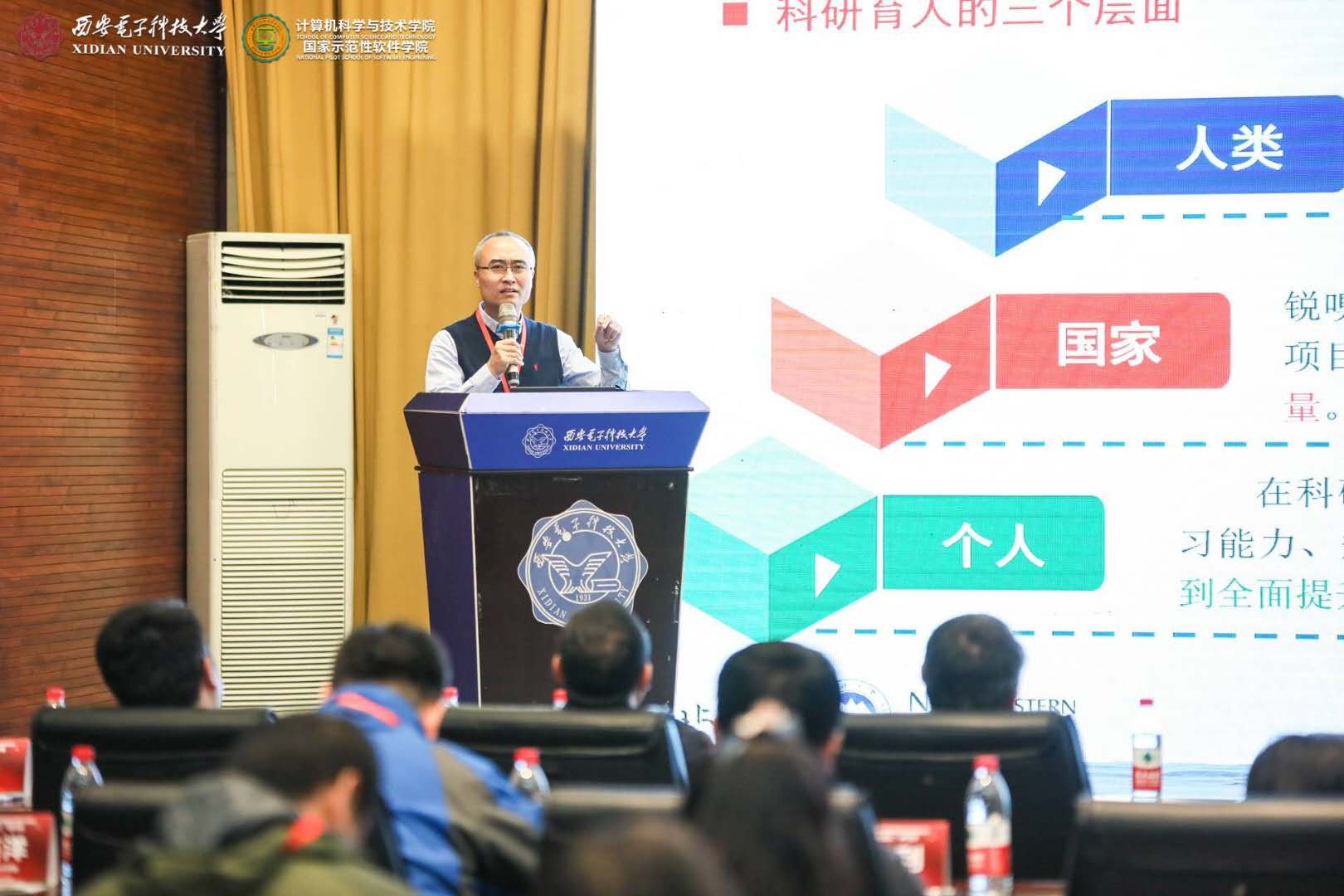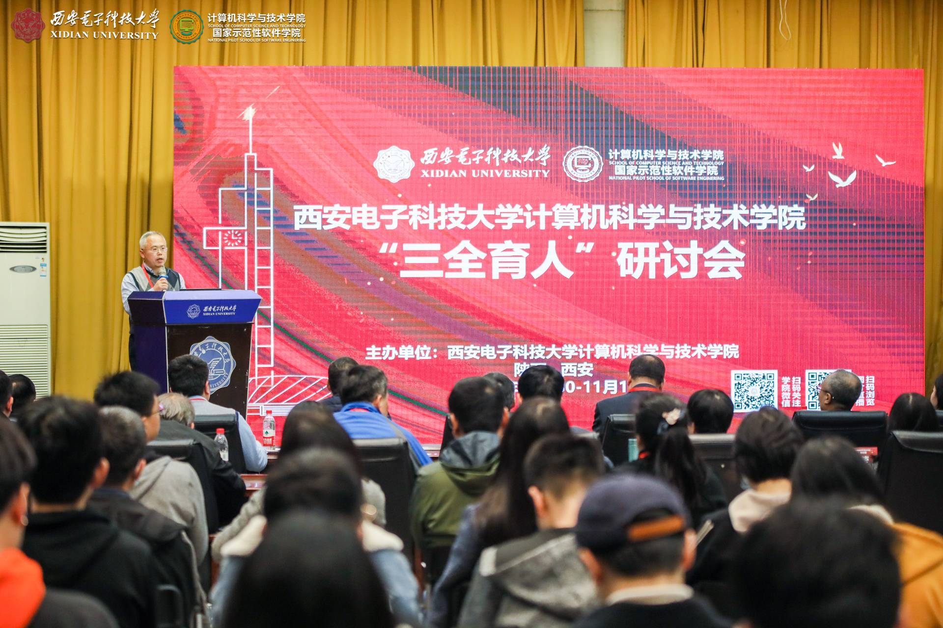 10月31日上午,主题报告在北校区老科技楼一楼报告厅举行。bat365在线中国登录入口党委副书记杨银堂代表学校致欢迎词,介绍了西电“加强顶层设计、深化书院制改革、推动思政课程和课程思政同向同行、推进精准思政和强化示范引领”等五大方面的“三全育人”工作,并对各位来宾莅临西电表示诚挚欢迎,向各位老师为西电“三全育人”工作传经送宝表示衷心感谢,预祝本次“三全育人”研讨会圆满举行!