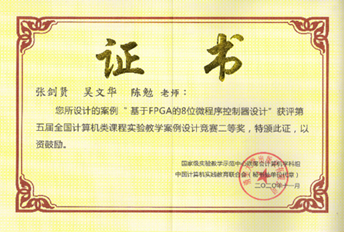 在论坛会议期间,张剑贤、吴文华、陈勉三位老师的实验教学案例《基于FPGA的8位微程序控制器设计》获第五届全国计算机类课程实验教学案例设计竞赛二等奖;该案例是综合运用数字电路、计算机组成原理、编译原理与FPGA等课程的典型案例,提高了学生对计算机系统整体认知和创新能力。