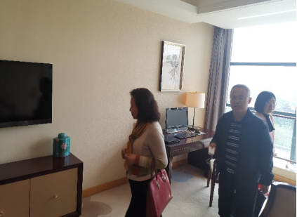 下一站工作组现场考察了陕西宾馆。作为集餐饮、住宿、会议为一体的园林式国宾馆,陕西宾馆占地面积1100余亩,建筑面积15万平方米,绿化率高达70%以上,拥有大会堂、大礼堂、各类大中小型会议室、接待厅、多功能厅等近50个。工作组先后考察了可容纳1700余人的陕西大会堂、600人多功能厅、200人多功能厅、100人中型会议室、50人小型会议室,以及厅廊的展区等。为保障参会代表的食宿,工作组还考察了若干处宴会厅与宾馆内提供的各类型房间等。