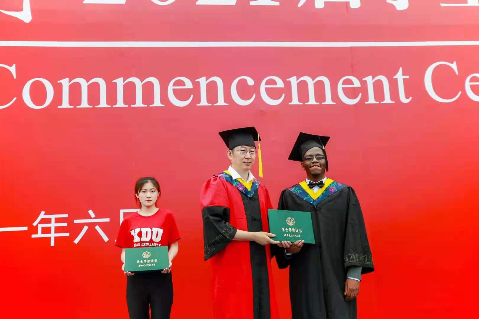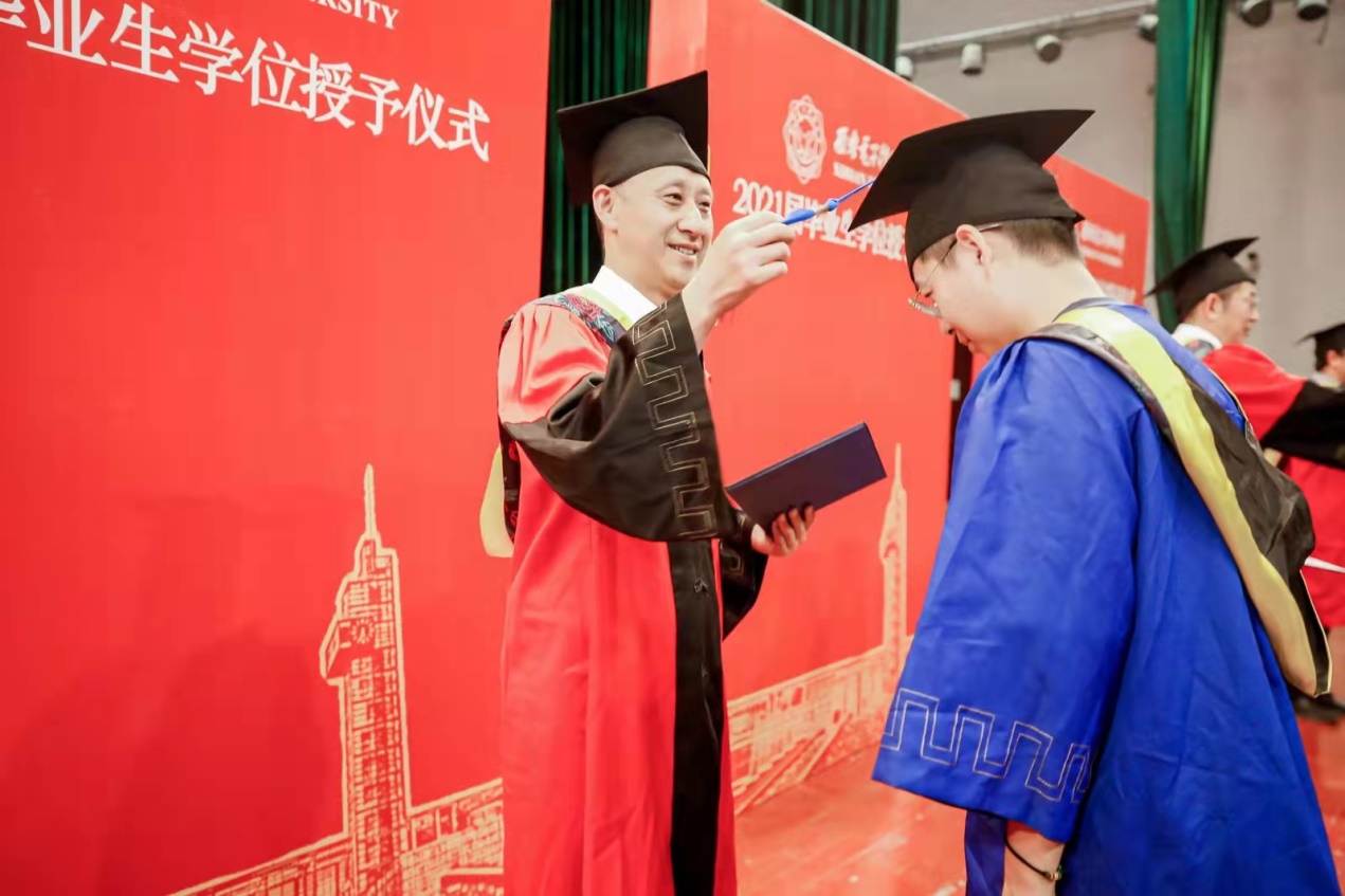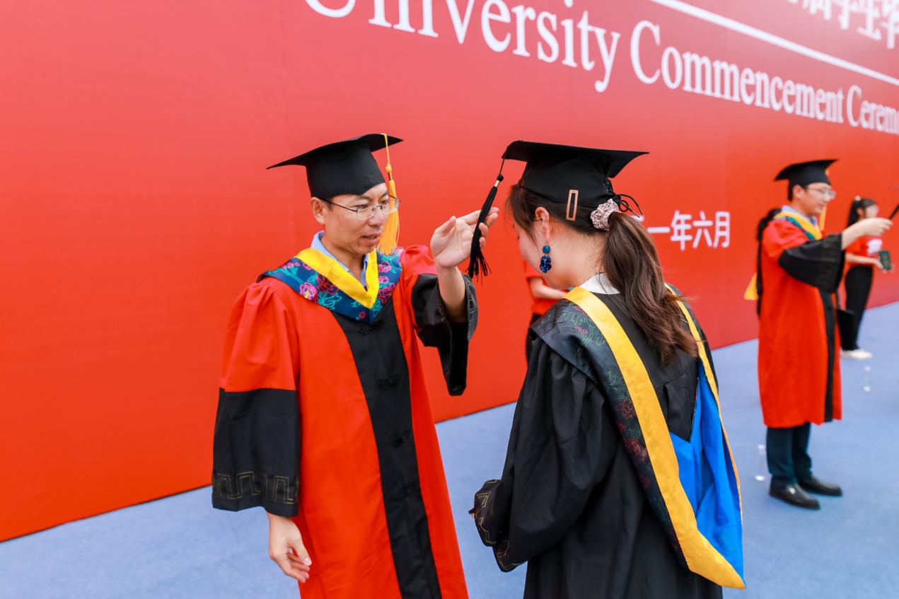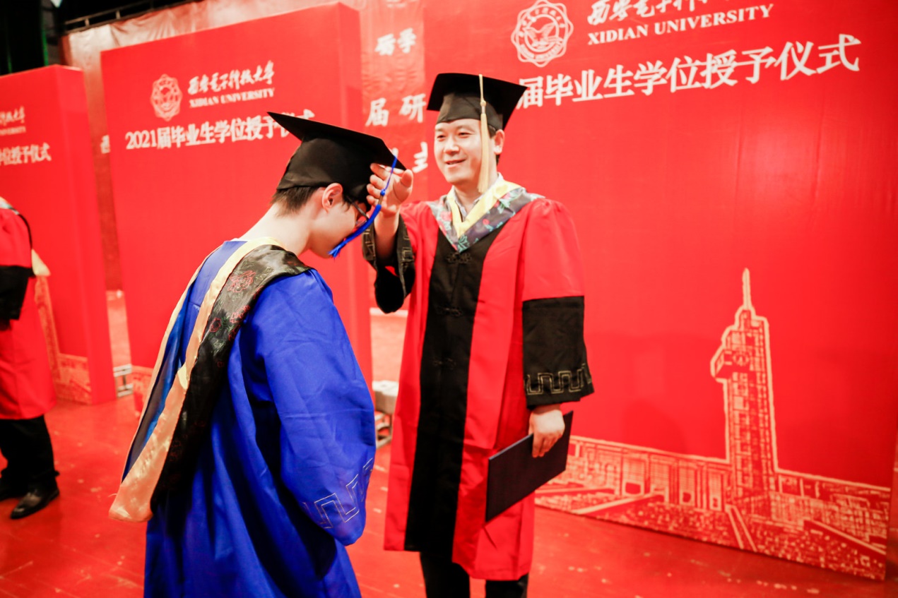 伴随着激扬、欢快的背景音乐,毕业生们排着整齐的队列,依次上台,授位嘉宾一一为同学们拨穗、授位。与会领导老师、全体毕业生和部分学生家长共同见证了这一激动人心的时刻。
