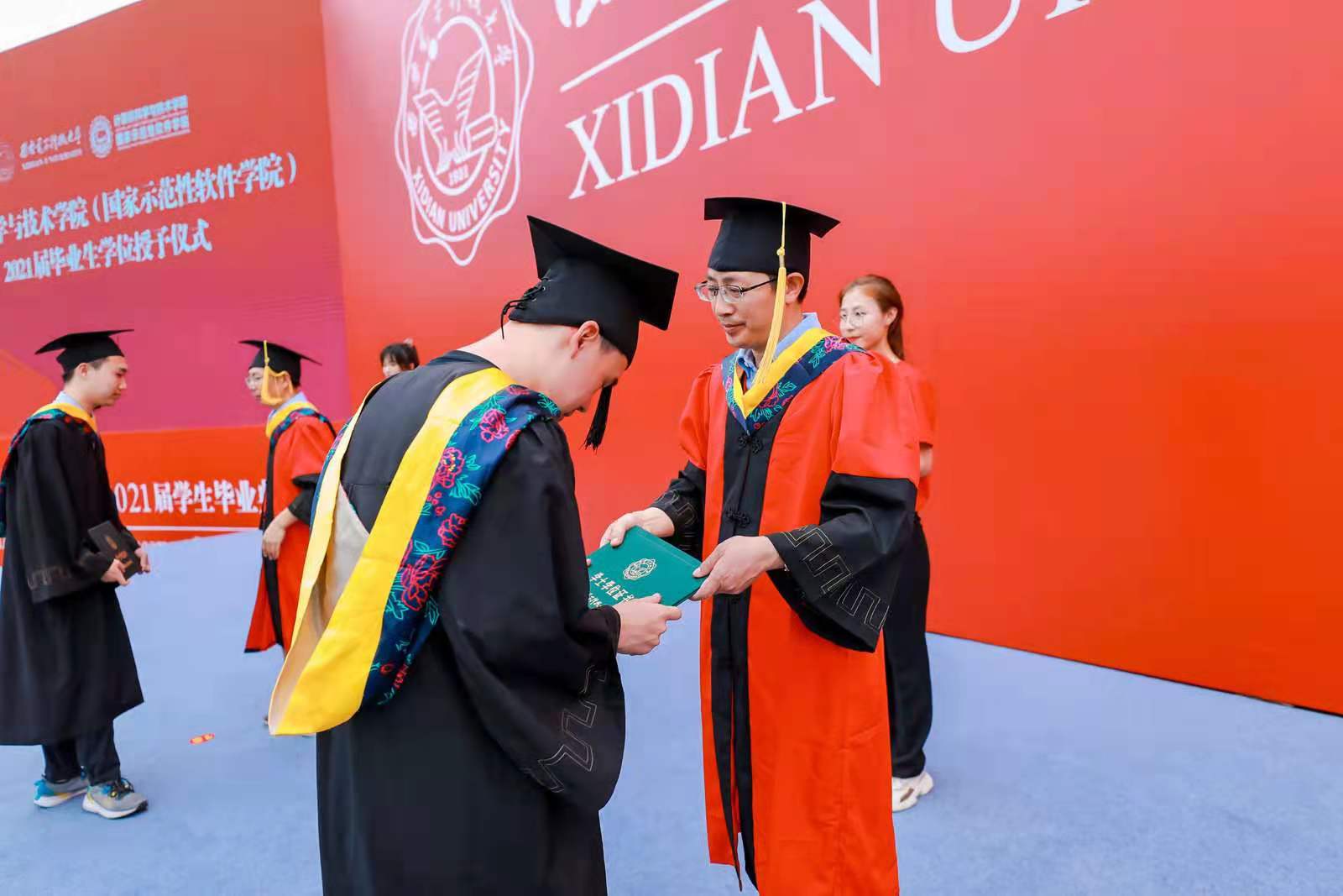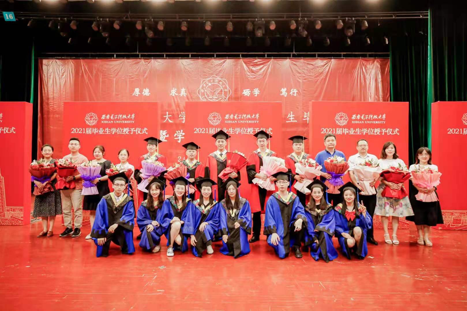 仪式最后,毕业生代表上台向领导、教师代表和辅导员献上美丽的鲜花,表达崇高的敬意。师生纷纷合影,记录这珍贵的一刻。bat365在线中国登录入口2021届毕业生学位授予仪式在深深祝福和依依不舍中圆满落下帷幕。