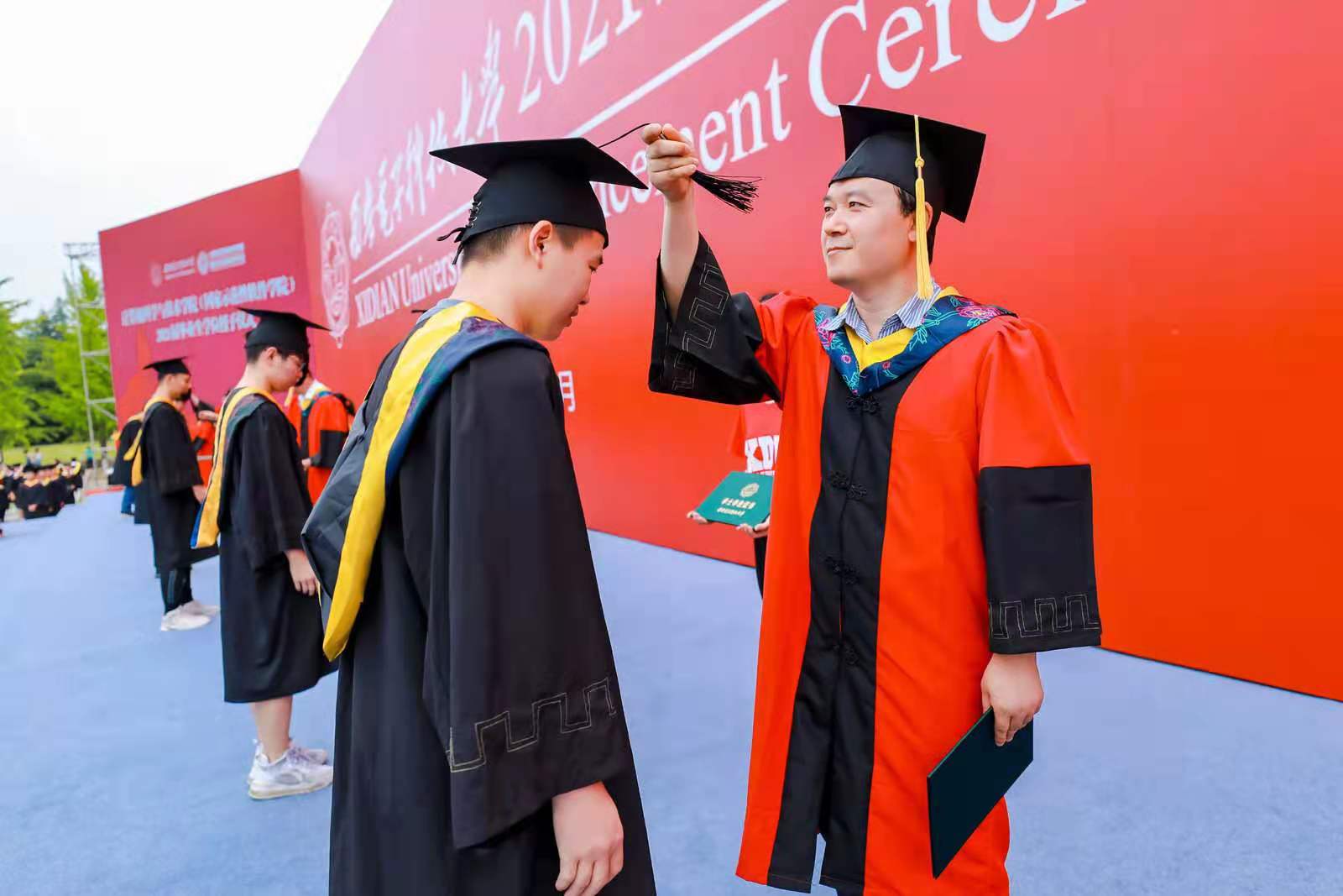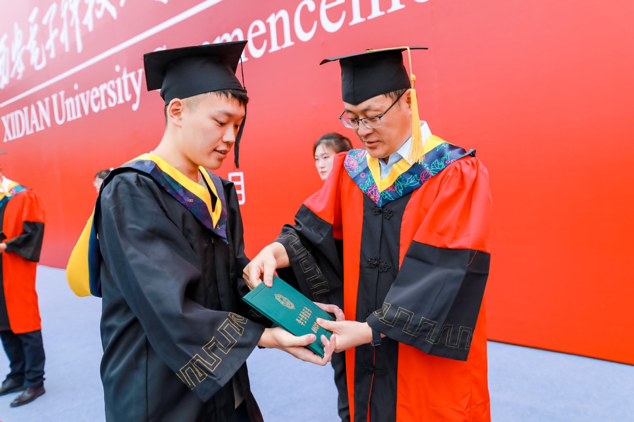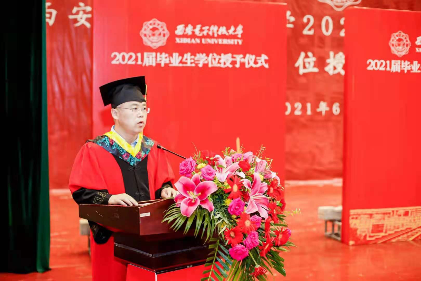 (通讯员 黄彩红 何敏之)庆西电九秩华诞,传三系奋斗精神;勇前行初心不改,瞰千里鸿鹄高飞。6月23日,bat365在线中国登录入口2021届本科毕业生学位授予仪式和研究生毕业生学位授予仪式先后在南北两校区成功举办。bat365在线中国登录入口副校长王泉教授出席仪式并为毕业生授位。学院党委书记李青山,执行院长崔江涛,学院教授委员会主任苗启广,副院长沈玉龙、宋胜利、万波为2021届937名本科毕业生以及506名硕博士毕业生现场一一拨穗授位。学院领导张卫东、赵韩强、张莹莹,毕业班辅导员、学院办公室人员和教师代表出席了仪式。仪式由院党委书记李青山主持。