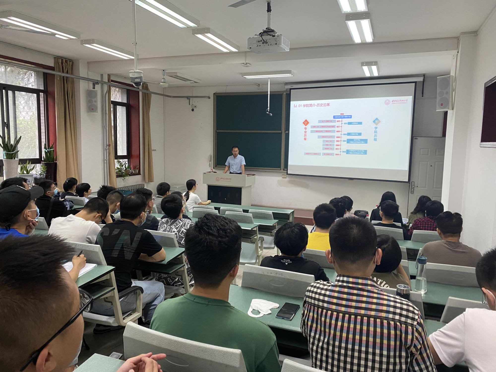会上,万波副院长首先代表学院对2021级第二学位新生的到来表示欢迎。紧接着,他从学院发展的历史沿革出发,对学院的组织机构、学科建设进行了详细介绍,并通过计算机科学与技术、软件工程、数据科学与大数据技术的专业介绍及课程实施说明,全面解答同学们在学习、科研方面的疑问。随后,辅导员宫源从疫情防控、校园制度、考试纪律、安全健康四个方面为同学们介绍学校教育管理制度。学院党委副书记张莹莹希望同学们可以明确在校学习与生活目标,尽快适应校园生活,并向同学们强调要严格遵守校规校纪,同时注重培养专业兴趣、打好专业基础,在新学校、新学期、新征程中扬帆起航。