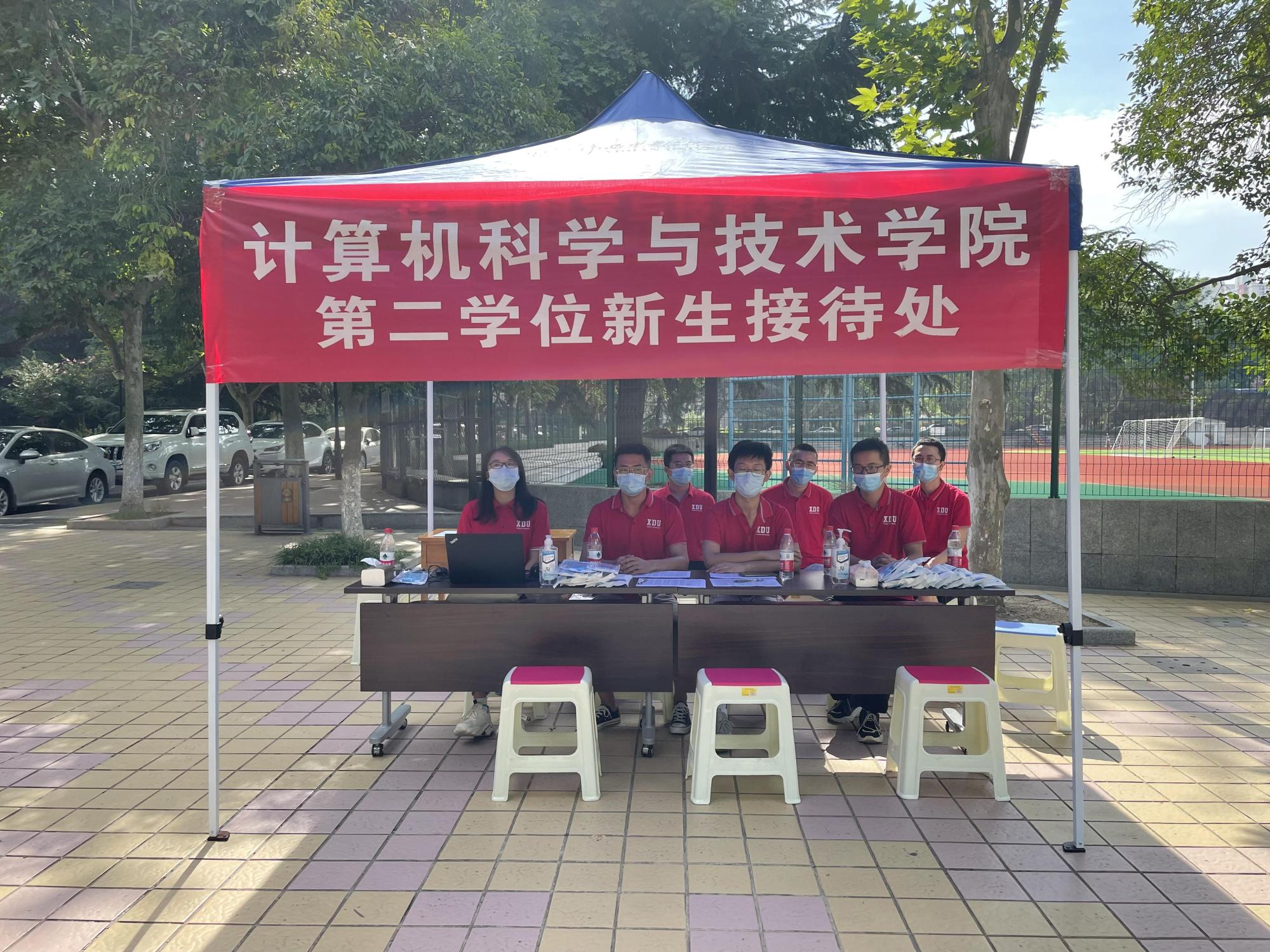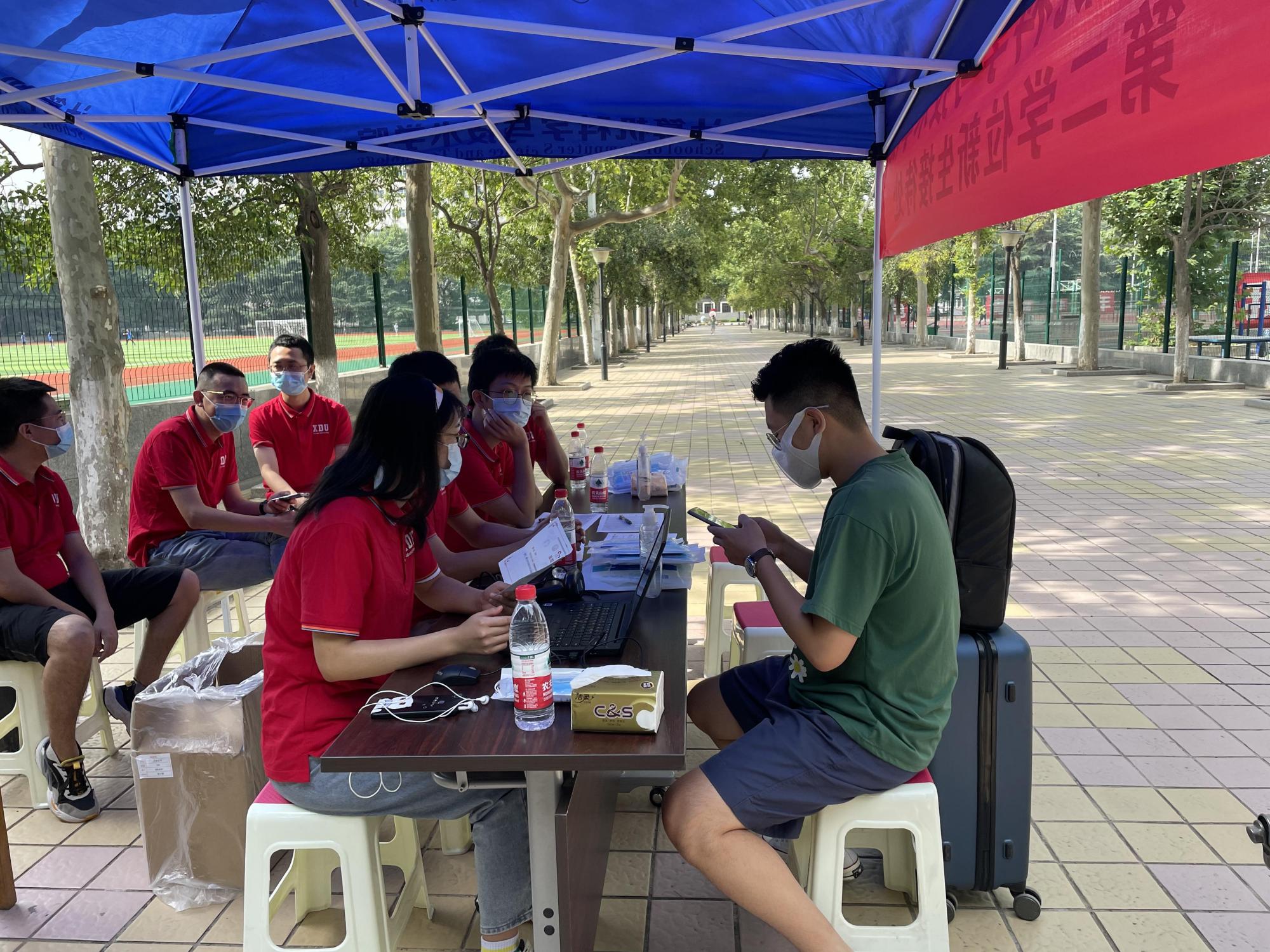 28日早上,辅导员老师及迎新志愿者们早早就开始了准备工作,在北校区主楼下设立第二学位新生报到接待点,搭设帐篷、摆放桌椅、安装设备、分配物资。根据学校防疫要求,迎新志愿者认真核验报到学生的健康码和相关证明,并为同学们发放校园一卡通及口罩等防疫物资,高效完成新生报到登记工作。