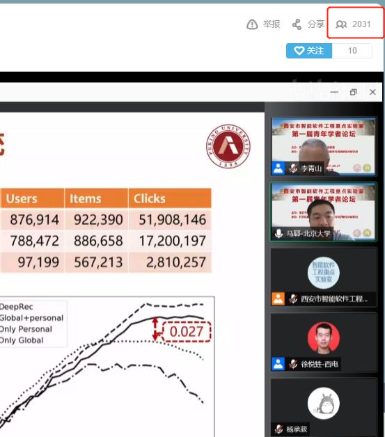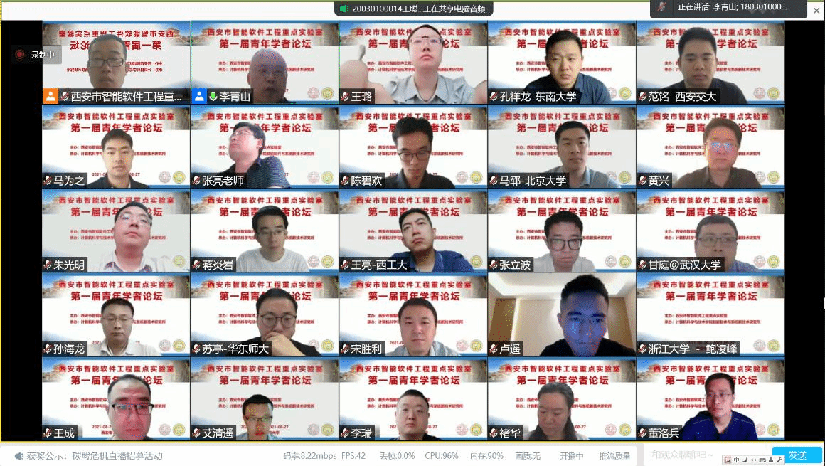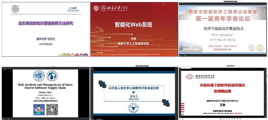 (通讯员 徐悦甡)2021年8月26日至8月27日,bat365在线中国登录入口西安市智能软件工程重点实验室第一届青年学者论坛成功举办。本次论坛由bat365在线中国登录入口智能软件与系统新技术研究所承办,采用腾讯会议与在线直播两种方式线上进行。论坛围绕智能软件与智能系统领域最新学术进展,邀请了清华大学、北京大学、南京大学、复旦大学、浙江大学、国防科技大学、北京航空航天大学、中科院软件所、东南大学、华东师范大学、武汉大学、同济大学、北京理工大学、西安交通大学、西北工业大学、bat365在线中国登录入口、美国犹他大学、德国慕尼黑工业大学等国内外软件工程学科优势高校的20位软件工程相关领域优秀青年学者,通过主题报告、交流沙龙等形式,分享了智能软件与智能系统领域的理论与技术新进展,讨论了相关领域的学术前沿,并就我校软件工程学科的建设与发展进行了交流。论坛吸引了国内外软件工程相关领域师生与从业人员的广泛参与,腾讯会议室同时在线人数超过700人,B站在线直播同时观看人数超过2000人。