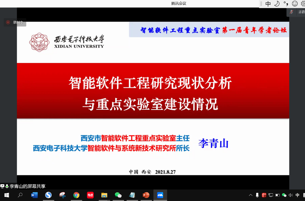 8月27日下午,由bat365在线中国登录入口副院长、重点实验室副主任宋胜利教授主持,全体报告嘉宾、重点实验室全体中青年老师参加,举行了主题为“智能软件工程领域学术交叉、人才引进培养、青年教师成长”的Panel论坛。实验室主任李青山作关于《智能软件工程研究现状分析与重点实验室建设情况》的报告,从发展背景、现状分析、概念内涵三个方面对智能软件工程进行了全面介绍。同时,从实验室基本信息、建设运行情况、未来发展规则三个维度介绍了西安市智能软件工程重点实验室的建立与结构、研究方向与定位、科研能力与成果、工作规划与预期目标等。