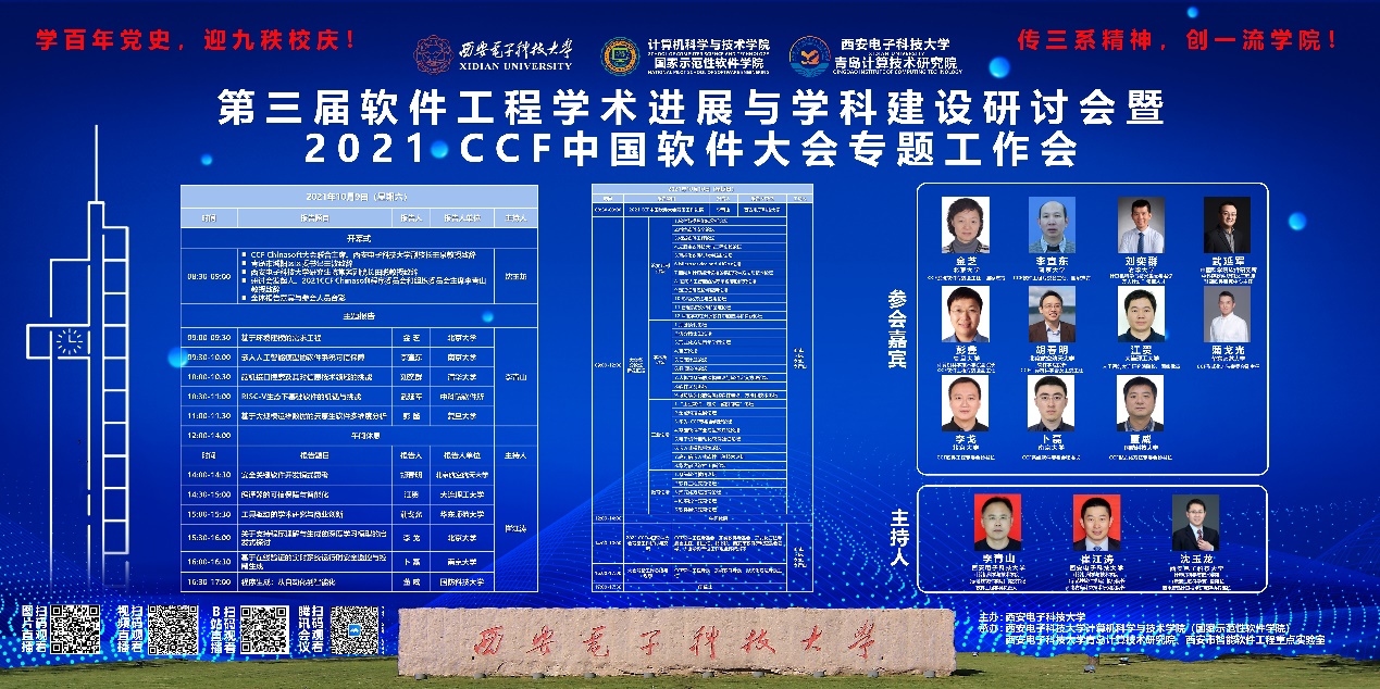 (通讯员 徐悦甡)2021年10月9日至10日,第三届软件工程学术进展与学科建设研讨会暨2021 CCF中国软件大会专题工作会在bat365在线中国登录入口青岛计算技术研究院成功举办。会议由bat365在线中国登录入口软件工程学科主办,bat365在线中国登录入口(国家示范性软件学院)、bat365在线中国登录入口青岛计算技术研究院与西安市智能软件工程重点实验室承办。会议通过线上线下结合的方式进行,线下举办地为西电青岛产教融合研究生联合培养基地。
