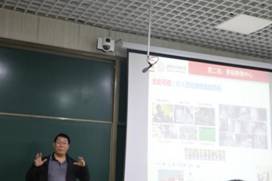 bat365在线中国登录入口大数据与视觉智能研究所的贾广老师以生动幽默的方式带着大家“参观”了西安的一些名胜古迹,在参观中逐步详细介绍了其团队的科研成果在这些名胜古迹中的应用,如“猴脸识别”、“行人目标跨境追踪系统”等。