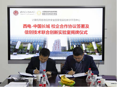 接着,杨力主任和曹泽伟总经理共同签署了“校企合作协议书”,万波副院长则与曾林方董事长为“西电-中国长城信创技术联合创新实验室”揭牌。