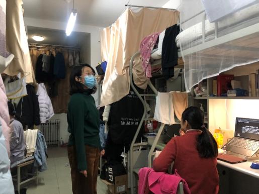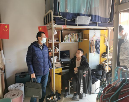 机关干部辅导员值守北校区投入防控工作,深入学生宿舍走访