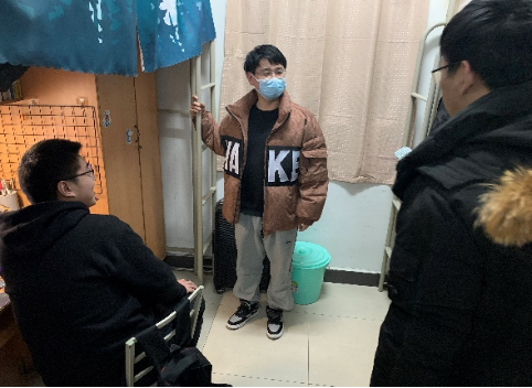 学生骨干组成志愿者队深入实验室了解同学们学习科研和生活情况,传达防控要求