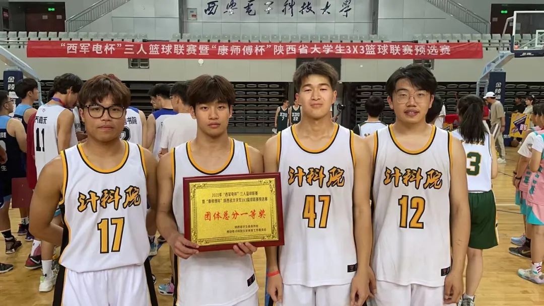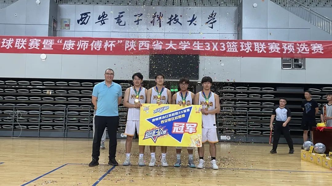 (通讯员 袁权)5月29日下午,bat365在线中国登录入口2022年“西军电杯”三人篮球联赛暨“康师傅杯”陕西省大学生3X3篮球联赛预选赛,经过两天赛程在南校区远望谷体育馆落下了帷幕。由余楷、张凯歌、金熙、谢家齐四名同学组成的bat365在线中国登录入口男篮队以全胜战绩挺进总决赛,并在与电院战队的激烈角逐中以15-5比分赢得决赛、捧得冠军,并将代表我校参加陕西省大学生篮球联赛。bat365在线中国登录入口也喜获该联赛团体总分一等奖。