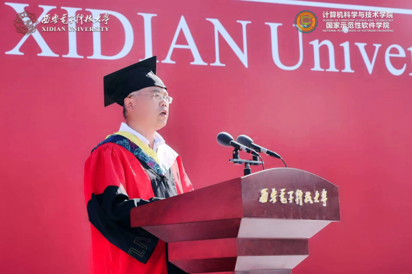 学院执行院长崔江涛教授深情寄语2022届毕业生,他谈到2018级同学以青春“小我”战疫情大考,逆风而行,主动担当;关键时刻,学生党员挺身而出,更多的同学受到感染积极加入一线志愿者工作,彰显“无我”初心。18级同学与重组后的bat365在线中国登录入口共成长,与历届西电人一起不懈奋斗,共筑院校荣光。他对同学们提出三点希望,第一是在两个百年的历史交汇时期“定位坐标”,立大志、明大德、成大才、担大任,强化终身学习能力,提升核心竞争力,把个人发展与国家命运相结合,将个人理想融入到中华民族的事业中;第二是在互联网的时代浪潮中坚守“慎独克己”,在信息洪流中严守计算机伦理,守护自己的精神家园,弘扬社会正能量;第三是在百年未有之大变局中乘风破浪,深刻认识到我国所面临的内外环境,认识到计算机行业发展面临的挑战,以解决实际问题为目标和突破口,知难而上,向“卡脖子”技术问题发起冲击,投身新一轮数字革命的热潮中。最后,崔江涛寄语毕业生,以青春之“小我”,践行“无我”初心,书写时代之“大我”,在各自的岗位上不断努力,把青春奉献给国家和民族,让青春闪耀光彩。