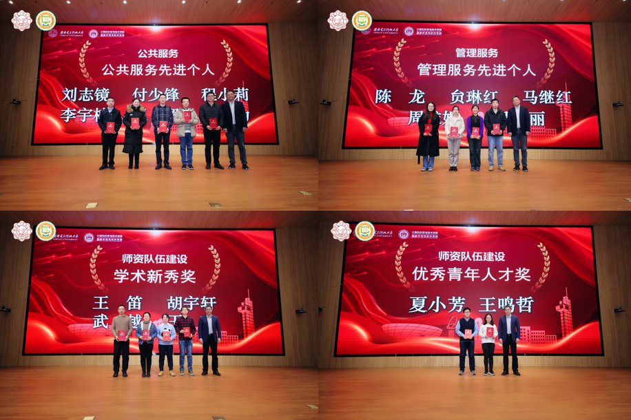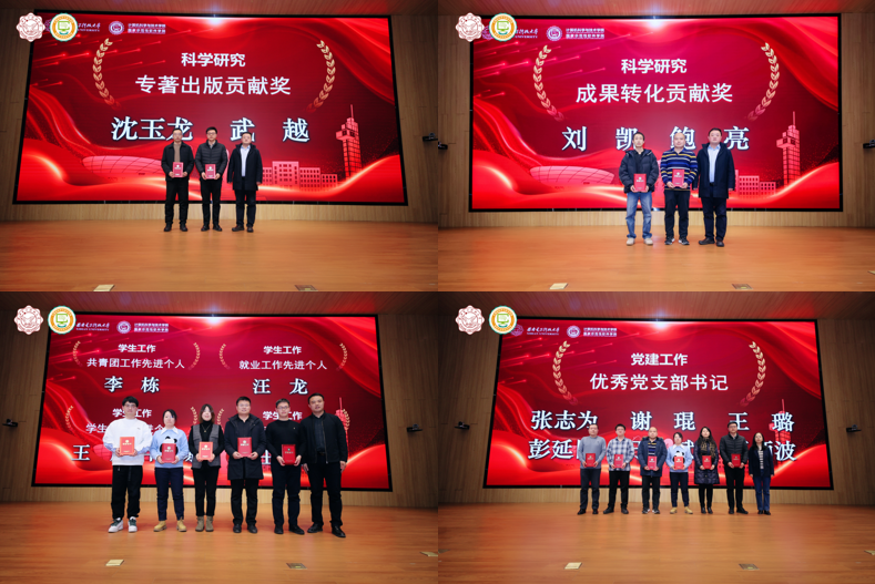 2023年度,在全体教职工的共同努力下,学院各项事业取得了重要成绩,涌现出了一批在党建、教学、科研、师资队伍建设、学生工作、管理服务、公共服务等方面的先进个人。学院正处级组织员张卫东宣读了学院表彰先进人员的决定。学院领导班子成员分别为获奖代表颁发荣誉证书并合影。