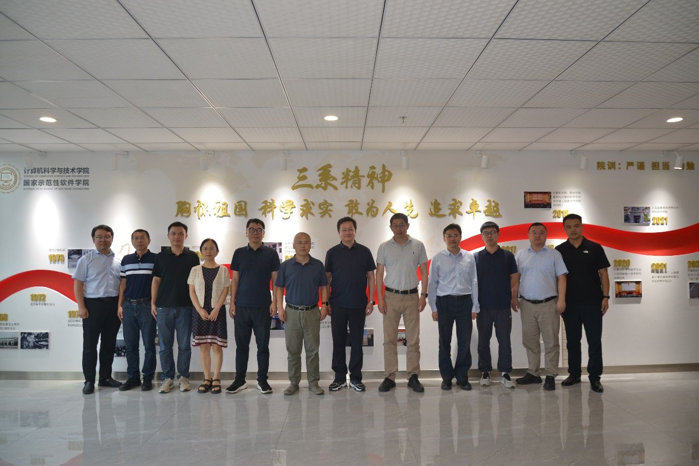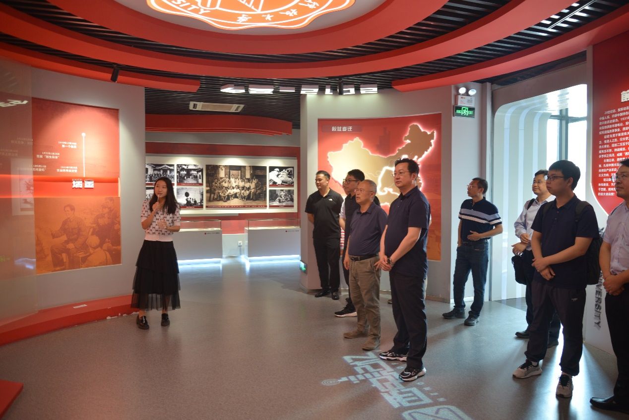 会前,学院陪同周鹏程董事长一行参观了校史馆,随后李青山在二楼学院形象墙详细介绍了学院的发展历程和现有组织架构,并具体介绍了党建引领、学科建设、科学研究、人才培养、学生活动等方面取得的成就,共同参观了学院的多功能厅、党建活动室、学院办公室以及相关研究所。