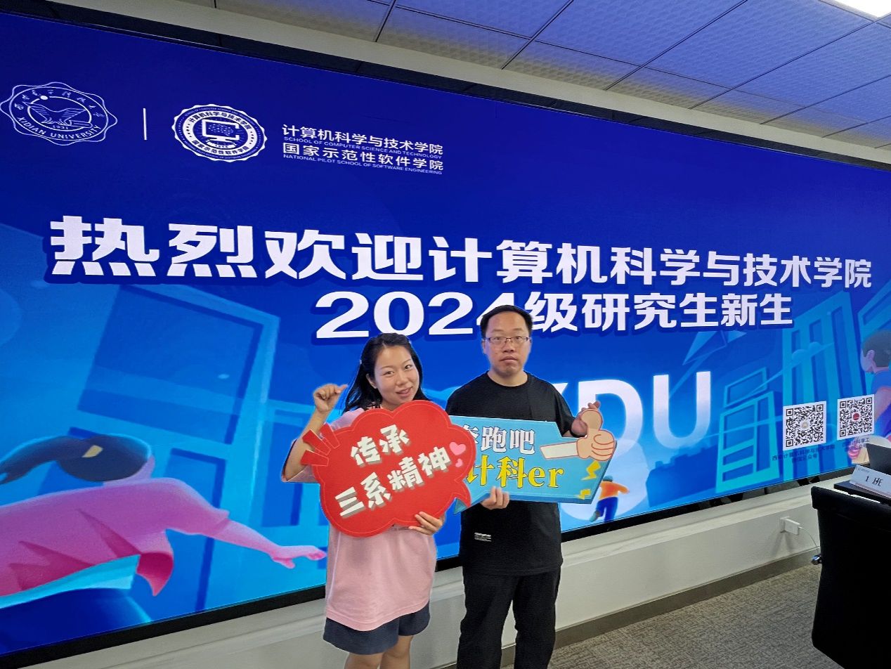 早上7点54分,学院便迎来了2024级第一位硕士研究生新生张持生,随着“咔嚓”一声,志愿者同学为他记录下了这一特别的时刻。别具匠心的布景,迎新现场打卡氛围瞬间拉满,这是专属于新生们的仪式感。“与来自全国各地的同学们相遇,让我非常期待在这里开启崭新生活,希望能在计科大家庭不断学习进步,收获成长、实现理想”张持生谈到。