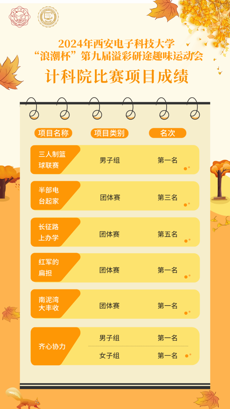 本次研究生趣味运动会共有150余名师生参与到比赛项目中,师生互动配合,携手共进,再创佳绩。学院高度重视体育育人工作,精心设计组织计科研工“体质强健计划”,已举办春日行动计划健康到到令,夏日行动计划羽毛球赛等师生共练共赛体育品牌项目,丰富研究生科研学习之余的生活场景。本次研究生趣味运动会作为秋日行动计划的重点内容,赛前积极组织训练,赛中深度参与,赛后经验总结。学院将继续做好研究生体育育人工作,增强研究生身体素质,加强研究生间互动交流,以更好的精神状态投入到科研工作中去。