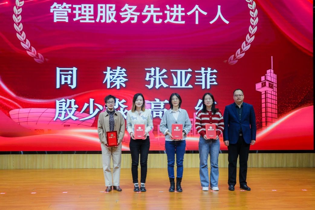 2024年,在全体教职工的共同努力下,学院各项事业取得新成效实现新突破,涌现出了一批在党建、人才培养、科学研究、师资队伍建设、学生工作、管理服务、公共服务等方面的先进个人。组织员王卫东宣读了《bat365在线中国登录入口关于表彰2024年度先进人员的决定》,领导班子成员分别为获奖代表颁发荣誉证书并合影。学院号召全院教职工以受表彰的先进人员为榜样,爱岗敬业、勤奋工作,为学院发展做出更大贡献。