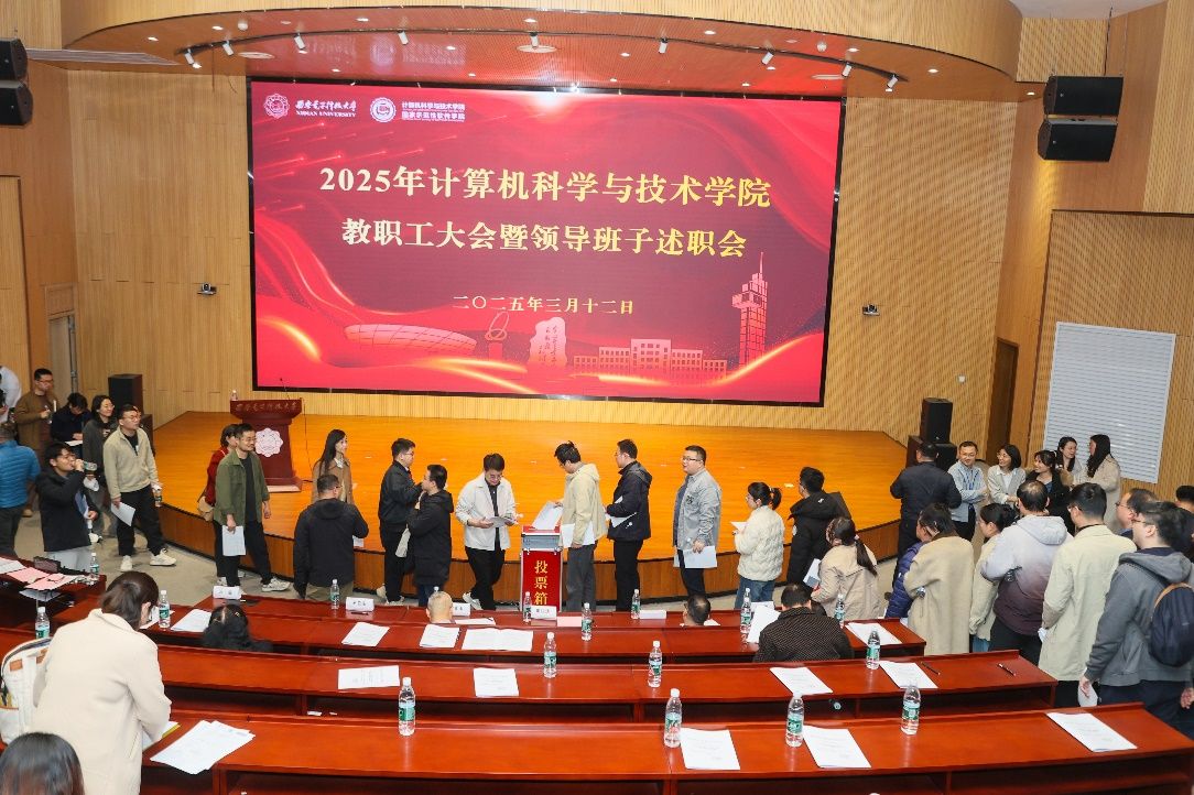 (通讯员 同榛 陈龙)3月12日下午,bat365在线中国登录入口在南校区网安大楼B101会议室召开2025年教职工大会暨2024年度领导班子述职会。按照学校相关要求和学院工作安排,本次会议的主要内容有三项:传达学校2025年工作会议精神并安排部署学院2025年工作;表彰学院2024年度先进人员;开展学院领导班子和领导干部2024年度考核述职。bat365在线中国登录入口领导班子成员、全体教职工及学生代表等220余人参会,会议由学院党委书记李青山主持。