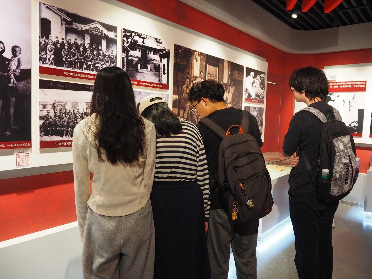 在校史馆中,讲解员以时间为脉络,通过“俯垂明训”“校史钩沉”“今日华章”三大篇章介绍了我校九十余载砥砺前行的光辉历程。驻足在一件件展品前,同学们仿佛开启了一场穿越历史的对话,深刻感受到学校的悠久历史和文化底蕴。2024级硕士研究生李豪谈到:“从半部电台起家,中央苏区诞生,长征路上办学,延安精神浸润,塞北风雪砥砺,一路走向古城西安,我深刻感受到学校深厚的红色基因,这让我更加坚定自己的理想信念,在未来的学习和生活中,我会努力拼搏,为实现‘计算报国’的目标不懈努力”。