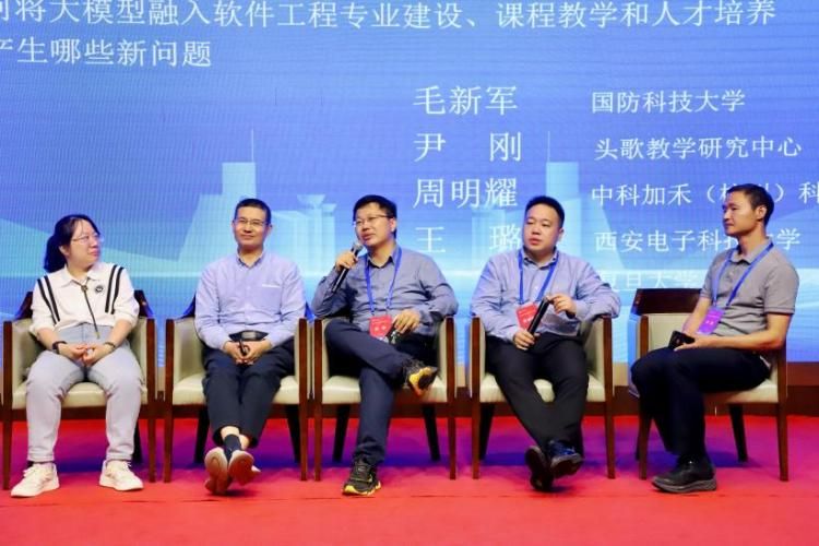 Panel讨论围绕“大模型时代社会和产业需要什么样的人才以及如何将大模型融入软件工程专业建设、课程教学和人才培养”主题邀请了国防科技大学毛新军教授、头歌教学研究中心尹刚博士、中科加禾科技有限公司周明耀副总裁、bat365在线中国登录入口王璐副教授、复旦大学彭鑫教授等专家学者参加讨论,众多与会代表就各位专家的报告与观点进行了激烈的交流与讨论。