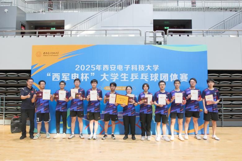 5月24日,“西军电杯”乒乓球比赛决赛在远望谷体育馆举行。由教师与学生组成的bat365在线中国登录入口代表队一路高歌猛进。小组赛以两个3:1脱颖而出,淘汰赛连续3:0战胜对手。决赛中,面对卫冕冠军通信工程学院,队员们沉着应对,凭借精湛的球技和默契的配合,以3:1的比分锁定胜局,实现从小组赛到决赛的全胜夺冠。