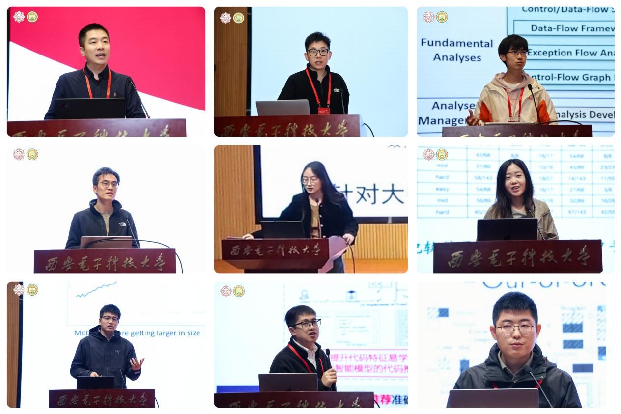 青年学者研讨会由李青山教授、杨力教授、西安市智能软件工程重点实验室副主任王璐副教授以及西安市软件可信认证关键技术重点实验室副主任于斌副教授主持。北京大学马郓博士、南洋理工大学陈震鹏研究员、南京大学谭添博士、复旦大学陈碧欢副教授、北京航空航天大学孙庆赟博士、武汉大学李佳博士、哈尔滨工业大学刘佳琨副教授、南洋理工大学孙伟松研究员以及北京邮电大学徐梦炜副教授,分别围绕面向智能体的Web软件系统、面向软件工程的智能体研究、面向现代软件的程序分析、大模型赋能开源软件供应链安全、大数据知识的图结构学习方法、大模型时代下的复杂软件智能化开发方法、智能化移动应用瘦身、可信智能化软件开发、终端大模型操作系统等主题带来了精彩报告。