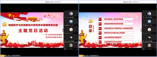 (通讯员 赵海洋)为激发本科生党员的科研热情,学习优秀研究生的科研精神和学习态度,积极响应把我国建设成为创新型国家和世界科技强国而努力奋斗的号召,bat365在线中国登录入口智能软件与系统新技术研究所本硕博师联合党支部与辅导员张志为老师共同策划,于2020年4月24日组织召开了“学习优秀科研榜样,建设科技创新型国家”主题党日活动。本次活动由支部青年委员王旭东同志主持,活动共计120人参加,包括32名支部党员,88名17级本科生及入党积极分子。