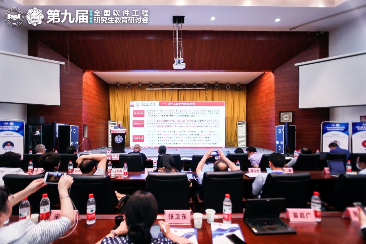 9月19日的研讨会围绕特色化示范性软件学院建设、教育部新一轮学科评估与软件工程学科建设、软件工程专业研究生课程建设等议题,在上下午分别设置了主题报告和三个分论坛进行交流和研讨,并全程在线上进行了视频和图片直播。