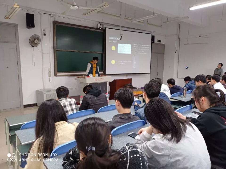 李栋老师向同学们简要介绍了当前就业以及考研形势,并分析了近几年计科学院考研数据,给在座同学们对毕业后选择就业,还是考研继续深造给予了有针对性的分析。李栋谈到,面对日益严峻的考研和就业形势,空前的升学和就业压力,希望通过开展此次活动,能够帮助同学们提升专业自信、树立坚定目标,更好地规划学业和职业发展。