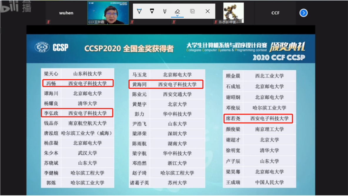 全国金奖获得者颁奖仪式(标红为西电)