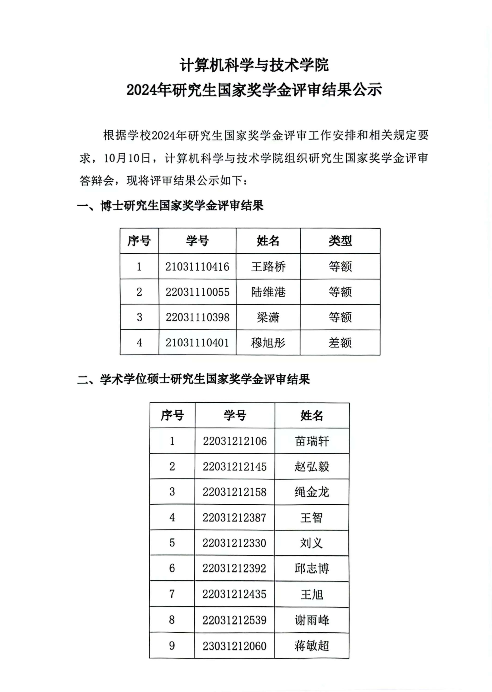 bat365在线中国登录入口2024年研究生国家奖学金评审结果公示