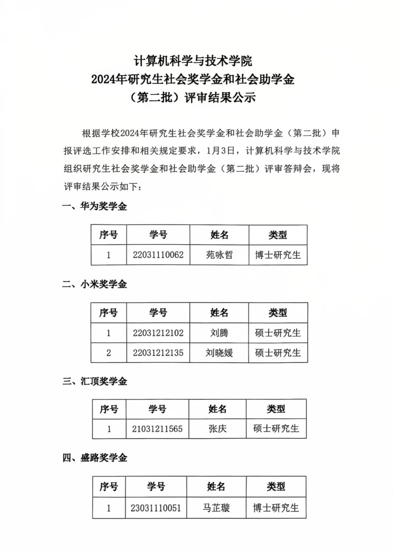 bat365在线中国登录入口2024年研究生社会奖学金和社会助学金(第二批)评审结果公示