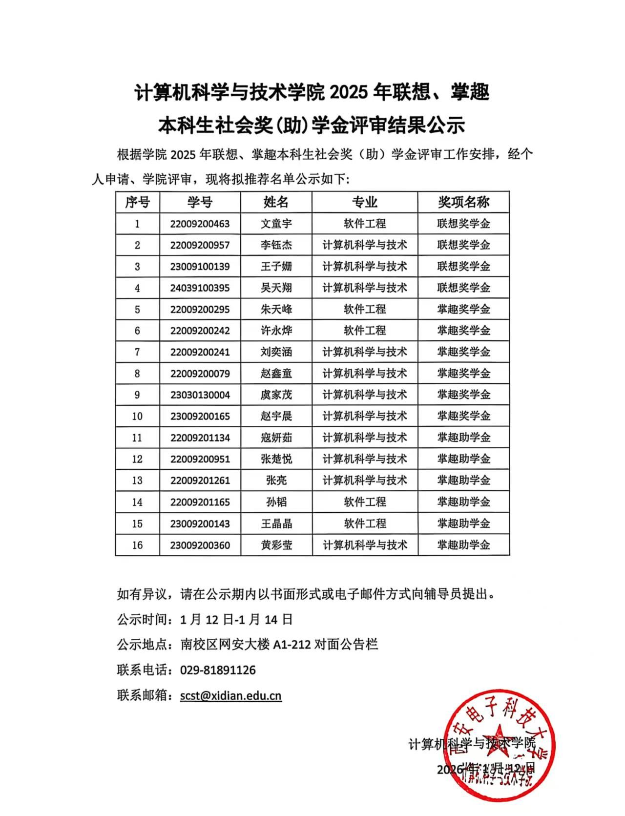 bat365在线中国登录入口2025年联想、掌趣本科生社会奖(助)学金评审结果公示