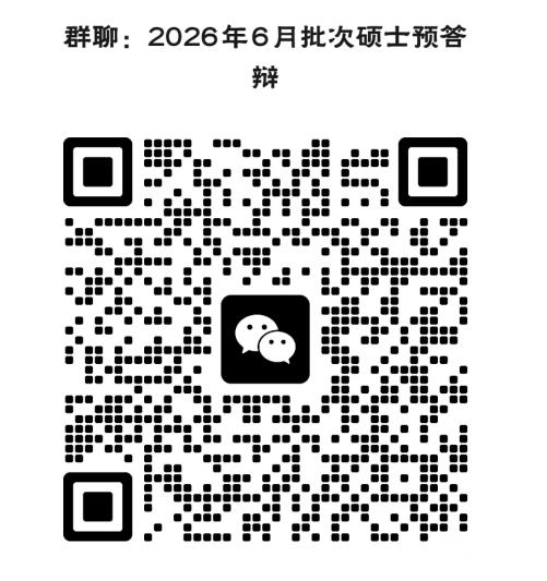 预答辩时间暂定于2026年4月28日,预答辩地点另行通知,请参加预答辩的硕士研究生扫描下方二维码进入群聊,关注群内通知。