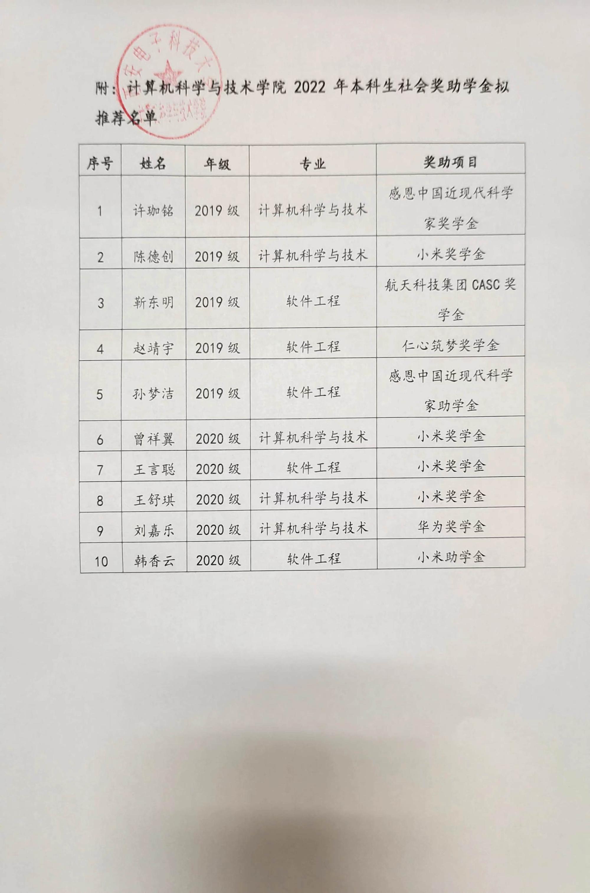 bat365在线中国登录入口2022年本科生社会奖助学金评审结果公示