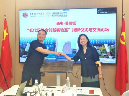 (通讯员  李翠敏)2022年6月20日上午,计算机网络与信息安全国家级实验教学示范中心(以下简称“中心”)与西安葡萄城软件有限公司在新校区G335产教互动室举行了“低代码联合创新实验室”揭牌仪式与交流座谈活动。参加本次活动的有中心主任杨力教授(线上),副主任贾文、王宗武、黄伯虎,网络与信息安全学院戚玉涛教授,葡萄城人事行政总监卢智峰、低代码生态总监宁伟、活字格产品经理胡耀、招聘专员吴沫妍及中心部分骨干教师与学生代表。