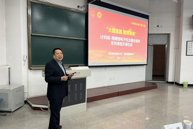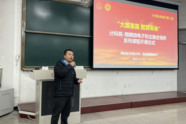 田泽总经理对翔腾微电子科研工作及课程内容进行了介绍,并表示公司十分重视与西电bat365在线中国登录入口合作开设面向卓越工程师培养的校企融合课程,一方面希望通过对于机载芯片与计算架构的讲解、实验与实训,实现高校与企业之间的产教研深度融合;另一方面,希望更多同学掌握面向自主芯片软硬件生态的开发技术与实践方法,助力卓越创新人才的培养。