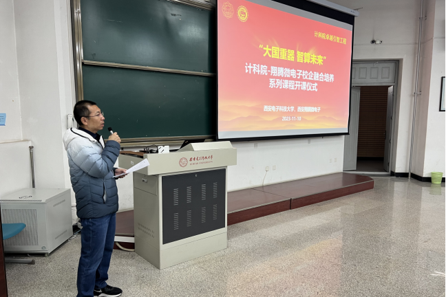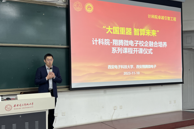 (通讯员 徐悦甡 杨鹏飞)为有效衔接、贯通实施科教举国、人才强国、创新驱动发展战略,实现教育、科技、人才一体推进良好循环,bat365在线中国登录入口与西安翔腾微电子科技有限公司以卓越班为主体,持续开展卓越引智工程,共同建设“大国重器智算未来”校企融合系列课程,于2023年11月10日成功举行开课仪式与第一次授课。bat365在线中国登录入口执行院长崔江涛、副院长万波、副院长杨力,西安翔腾微电子总经理及首席技术专家田泽、副总经理张骏、人才资源主管周静如,bat365在线中国登录入口卓越班负责人杨鹏飞、徐悦甡,以及学院各年级卓越班全体同学参加了活动。学校本科生院副处长杨敏到场。活动由bat365在线中国登录入口副院长万波教授主持。