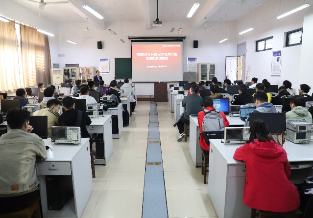 活动开始,万波副院长向现场师生专家介绍参会人员、活动主题以及活动流程,向翔腾公司技术人员表示感谢。随后,翔腾公司NPU方向技术负责人秦翔介绍了公司HKN201型NPU基本性能指标,与国内主要神经网络处理器进行对比,分析了翔腾NPU在部分应用领域和处理算法中的优势,对公司正在开展的航空领域相关行业应用案例进行了讲解和现场演示,分享了基于NPU的实验教学和系统能力培养课程建设思路,并与师生交流了开发板的试用和应用案例开发情况。通过讲解,与会人员对自研NPU的算法适配、算力、操作使用方法和科研教学应用等情况有了深入了解。