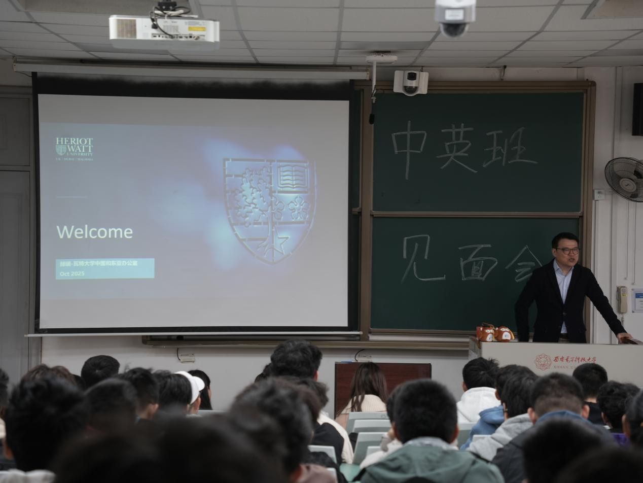 10月22日下午,王忠义老师代表英国赫瑞瓦特大学来访西电,与2025级bat365在线中国登录入口中英班学生于A-527开展交流分享活动。他结合赫瑞-瓦特学习工作的亲身经历,为学生详细介绍项目特色以及英国学习生活建议。他阐述了赫瑞瓦特大学的办学概况、国际排名与学科特色,并就项目的招生要求与毕业生就业情况,并系统展示了英方涵盖安全保障、就业指导、心理咨询与医疗服务的全方位支持体系。问答环节中,他就赫瑞瓦特大学的校史及现状与学生进行互动,结合丰富的图片展示,进一步介绍学校多元的社团文化及爱丁堡深厚的历史底蕴与城市魅力,有效激发了同学们对未来英国学习生活的热情与期待。