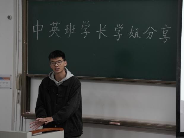 10月19日晚,中英班于B537组织学习经验分享主题班会,邀请通信工程中英班2021级本科生张岳、马迅驰、祝悦和同学们分享本科学习经验以及英国留学建议,发挥朋辈互助关键作用,为大一新生树立学习标杆。