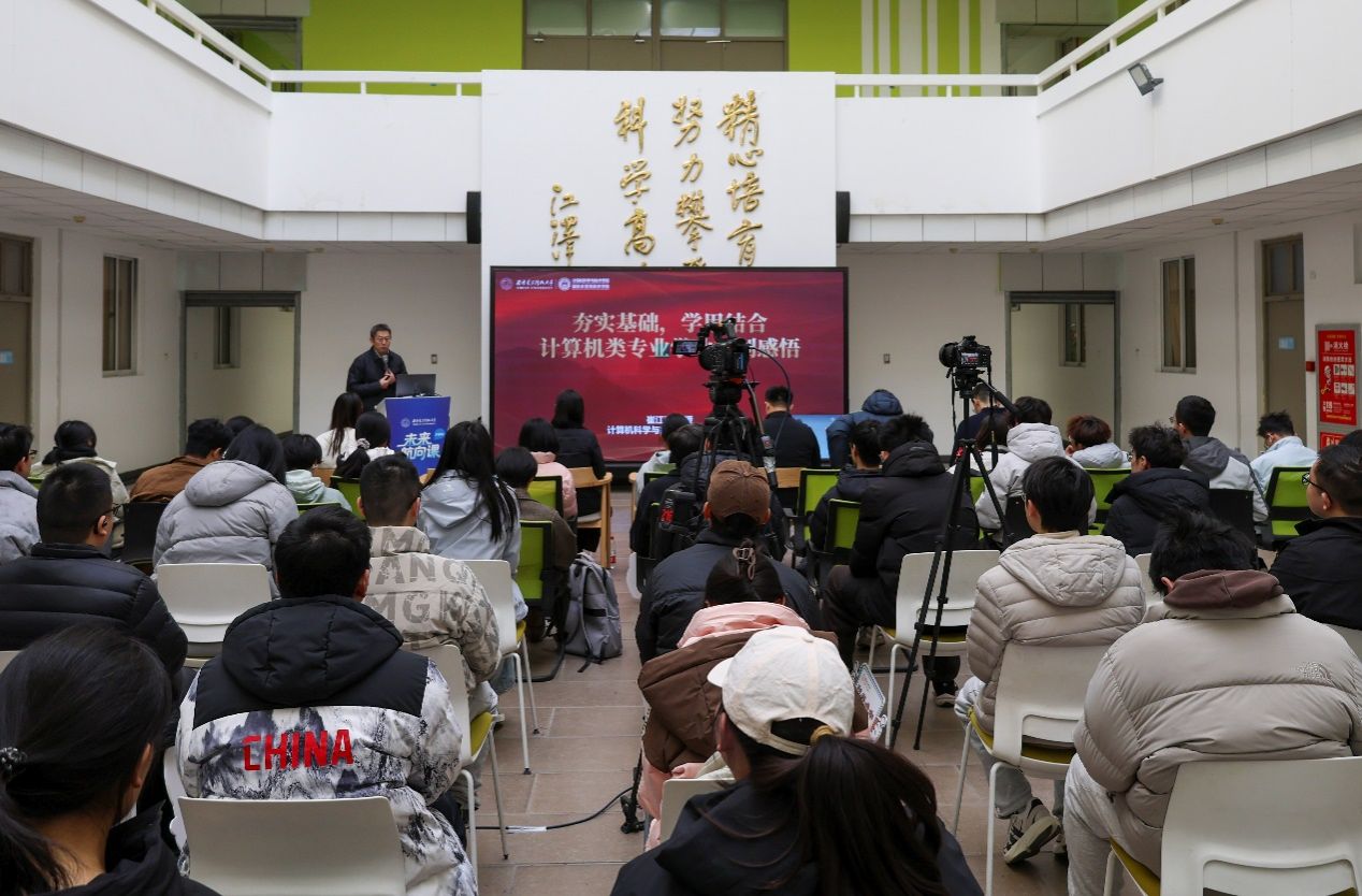 崔江涛教授谈到,在人工智能浪潮中,数理基础与计算机核心课程对计算机类专业学生的成长至关重要。作为西电学子,在产业引领技术发展、知识迅速更新的背景下,更应深入掌握AI底层软硬件核心原理,扎实打好矩阵论、随机过程等数学基础。他希望同学们坚持务实思维,实现“理论指导实践、实践反哺理论”的良性循环,主动走进实验室、积极参与实践训练,在实际操作中锤炼“从问题中找答案”的能力;同时要主动融入团队协作,学会换位思考,通过高效沟通打破信息壁垒,推动项目切实落地。