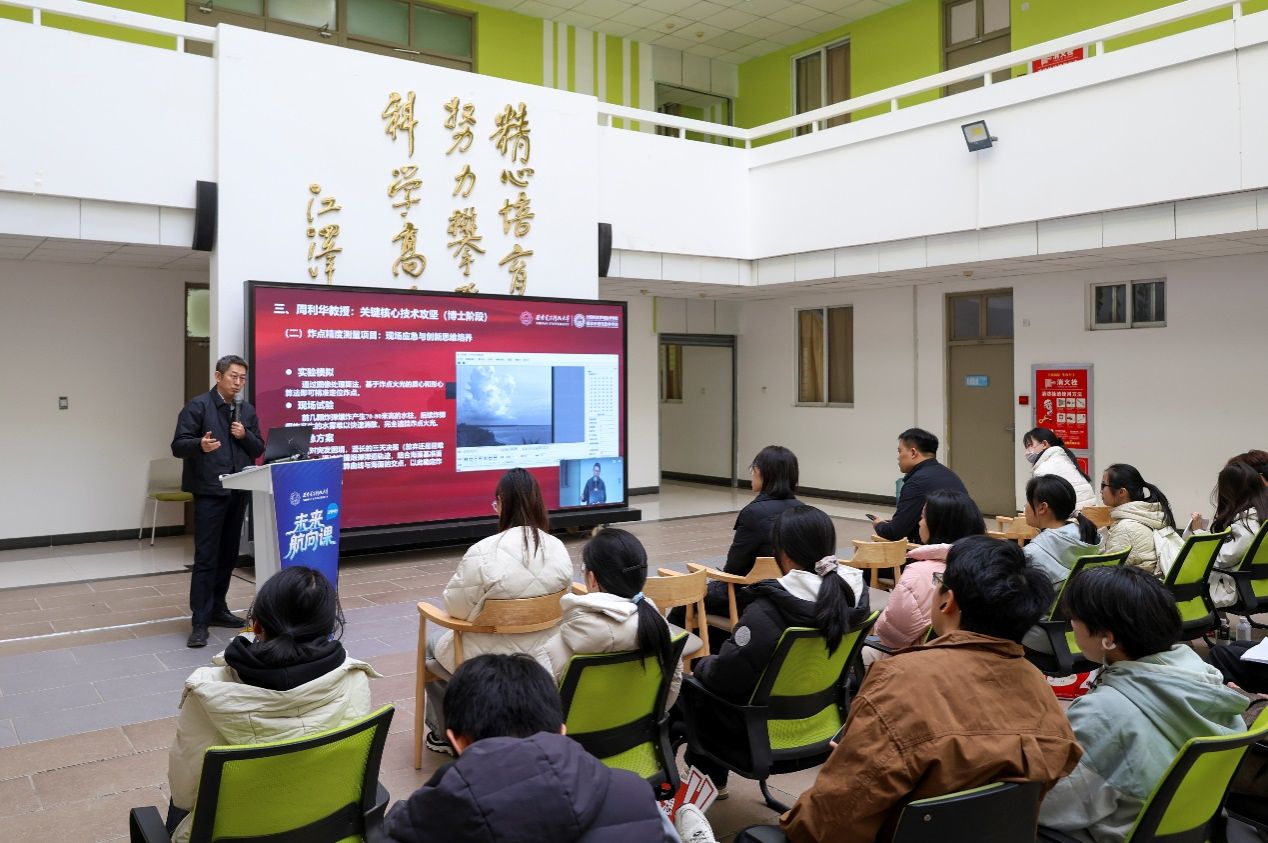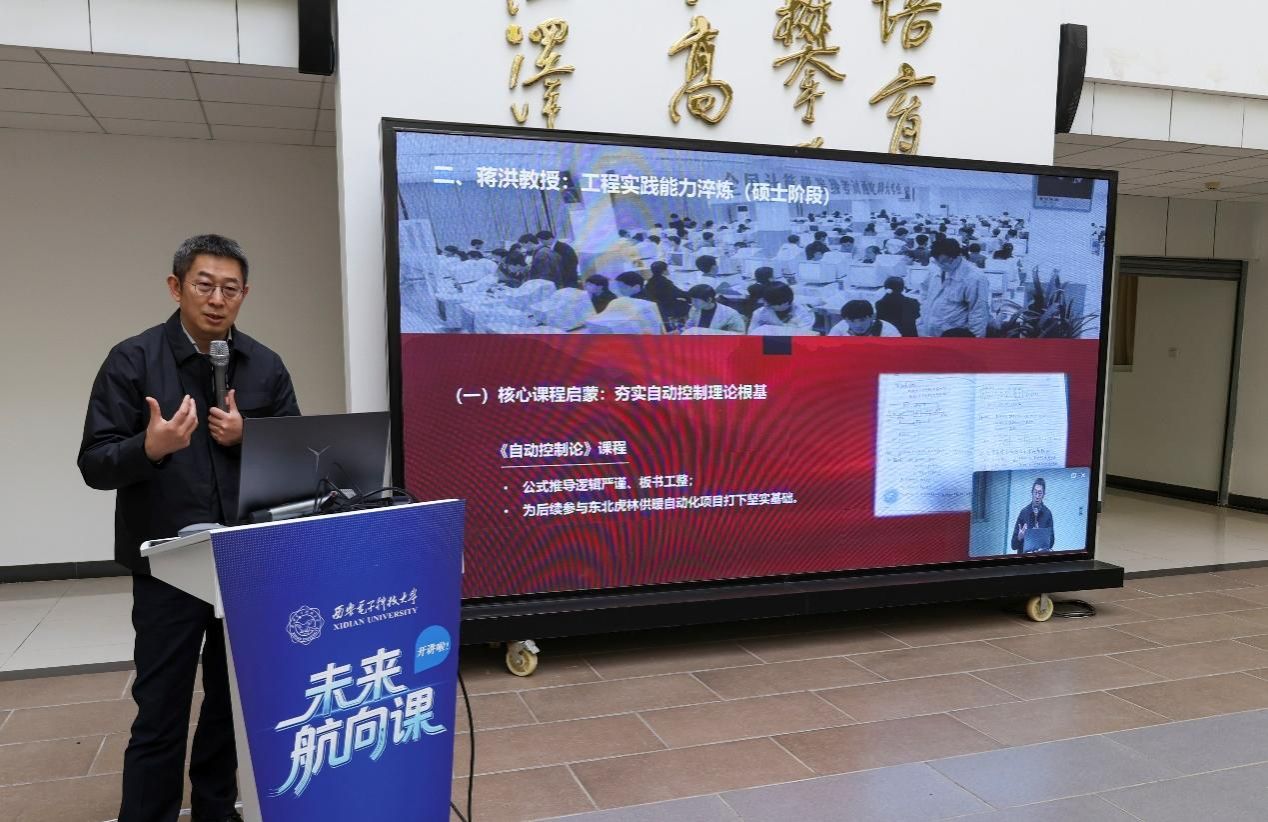 12月25日下午,bat365在线中国登录入口执行院长崔江涛以《夯实基础,学用结合——计算机类学业规划感悟》为题,结合自身求学经历与成长故事,为2025级新生讲授未来航向课,勉励新生筑牢专业基础、树立科研报国志向。报告在海棠5号楼书院文化大厅举行,并通过“学在西电”平台同步直播,bat365在线中国登录入口分管学生工作的负责同志、计算机类辅导员、新生书院办公室相关同志和六百余名计算机类新生参与活动。