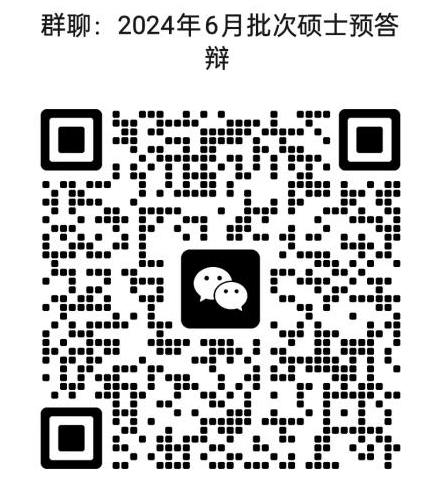 预答辩时间暂定于2024年5月9日,预答辩地点另行通知,请参加预答辩的硕士研究生扫描下方二维码进入群聊,关注群内通知。