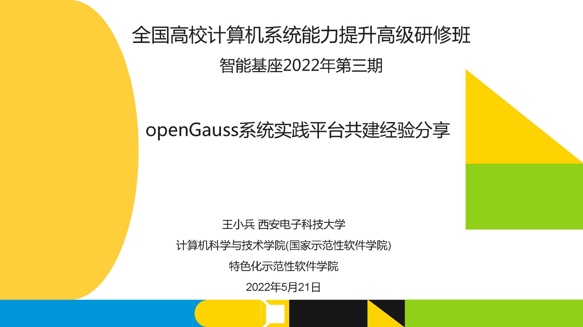 在华为的支持下,王小兵积极参加openGauss讲座公共服务,致力于打造国产数据库的教育生态圈,扩大西电在智能基座方面的影响力。应华为邀请多次进行数据库教学改革主题报告,包括华为开发者大会HDC 2021做主题报告“构建数据库的教育生态—openGauss在教学实验中的运用”,智能基座2021年第十二期做主题报告“构建国产数据库的教育生态—openGauss数据库课程教学融合经验分享”,智能基座2022年第三期做主题报告“openGauss系统实践平台共建经验分享”等。在学校和学院的支持下,王小兵将继续openGauss教学和实践研究,向全国高校数据库教师分享经验,期待建立国产数据库的教育生态圈,缓解数据库技术的卡脖子问题。