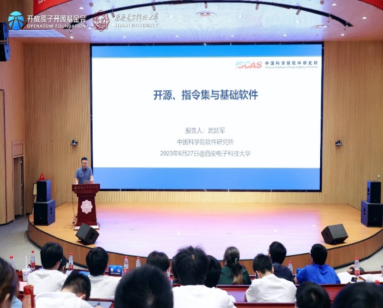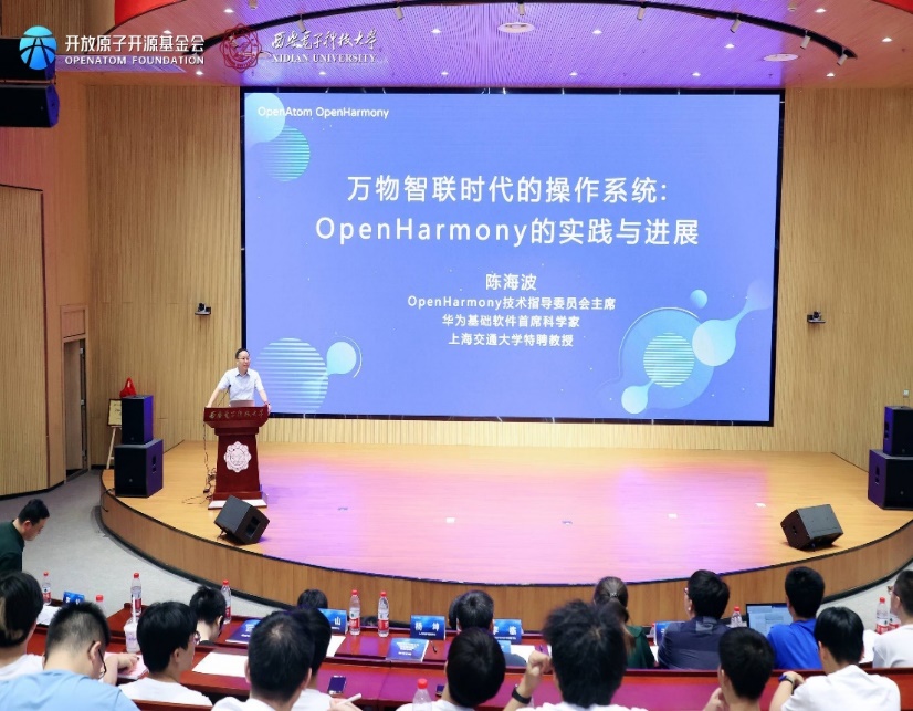 仪式后,陈海波和武延军两位老师代表OpenHarmony TSC专家向bat365在线中国登录入口的师生们做了OpenHarmony相关主题的技术报告。第二阶段会议由bat365在线中国登录入口副院长李瑞主持。