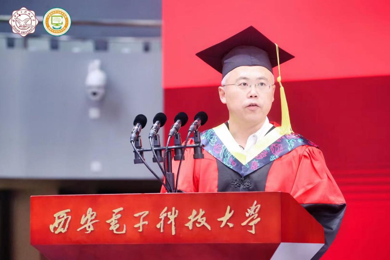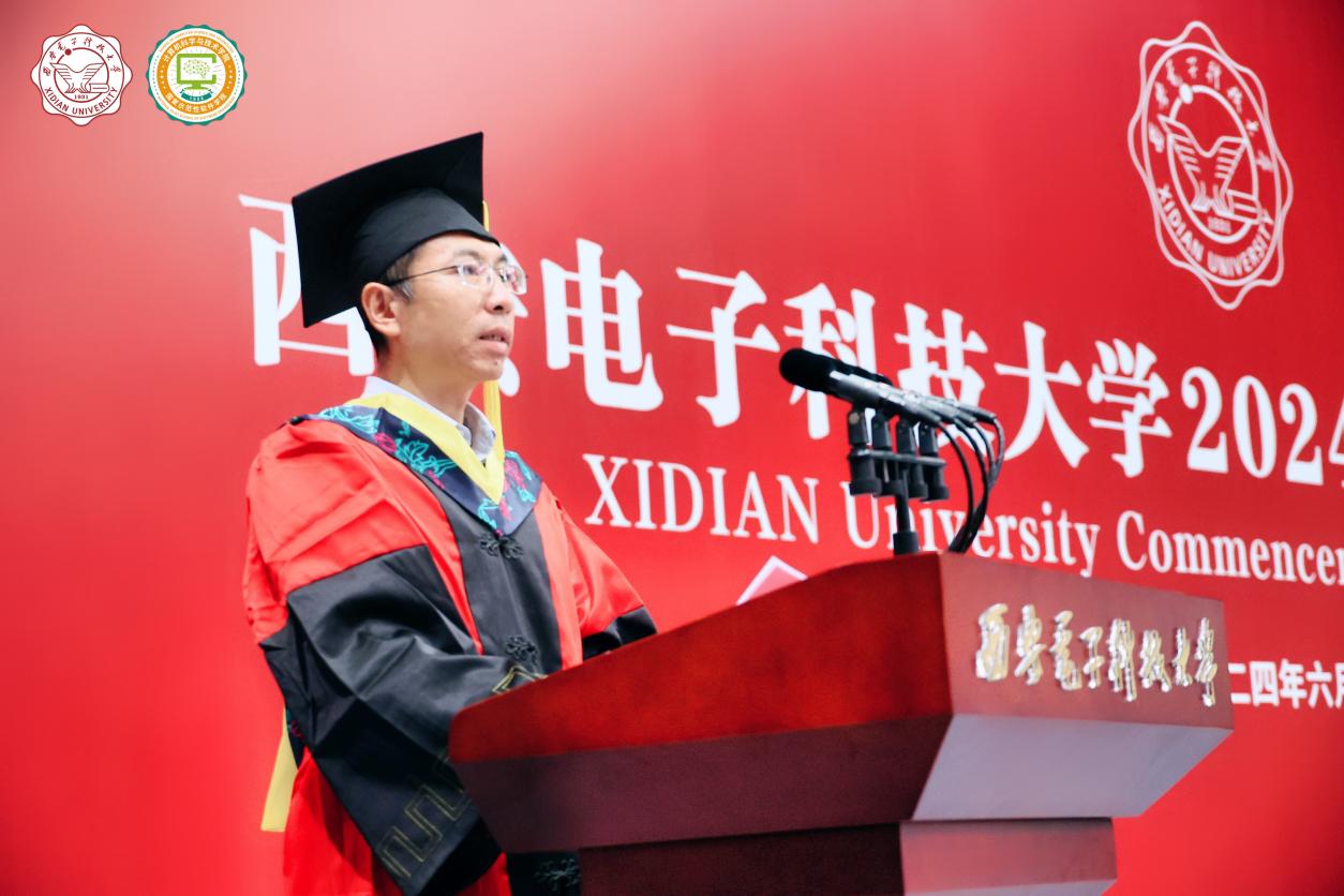 学院执行院长崔江涛教授深情寄语2024届毕业生,他指出2024届全体毕业生在党和国家征程壮阔、学校学院发展提质增速的重要阶段,躬身入局、挺膺担当,不断描绘着担使命、勇作为的西电青年群像,更延续着“老三系”人的精神,祝愿全体毕业生在新时代打开人生成长新天地,书写大有可为、大有作为的青春华章。他对同学们提出三点希望,一是要心系祖国,挺膺担当,积极响应国家之需、人民之盼,心系祖国,志存高远,脚踏实地,把个人理想同祖国前途和民族命运紧密联系。二是要行而不辍,履践致远,在数字化浪潮中乘风破浪,将在学院所学到的知识和技能,作为职业生涯中最坚实的基石。三是要以知促行、以行求知,立足岗位、苦练本领、创先争优,努力成为行业骨干、青年先锋,发挥在西电所学,用计算机技术服务社会、造福人民,达到个人价值与社会价值的统一,努力做到不负青春、不负理想、不负时代、不负人民。