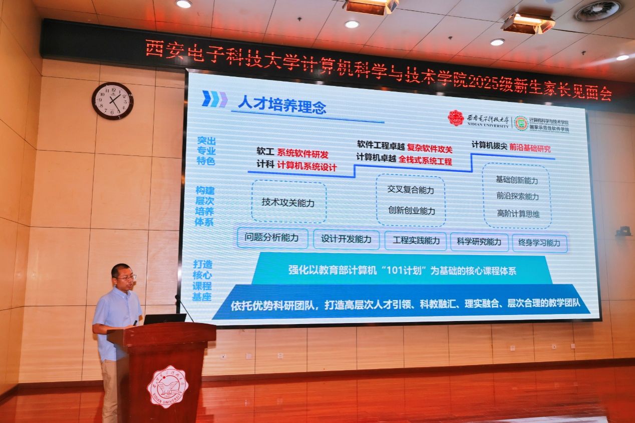 为更好地发挥家校育人作用,合力促进学生成长成才,8月24日中午,bat365在线中国登录入口分别于行政楼210报告厅与会议中心A103报告厅召开了2025级计算机类新生家长见面会及中英班新生家长见面会。学院党委书记李青山、执行院长崔江涛,分管本科生教育教学、国际化和学生工作的相关负责同志,计科及软件工程专业负责人、拔尖班与卓越班负责人、新生辅导员以及2025级新生家长参加会议。会议由学院党委副书记黄成龙主持。